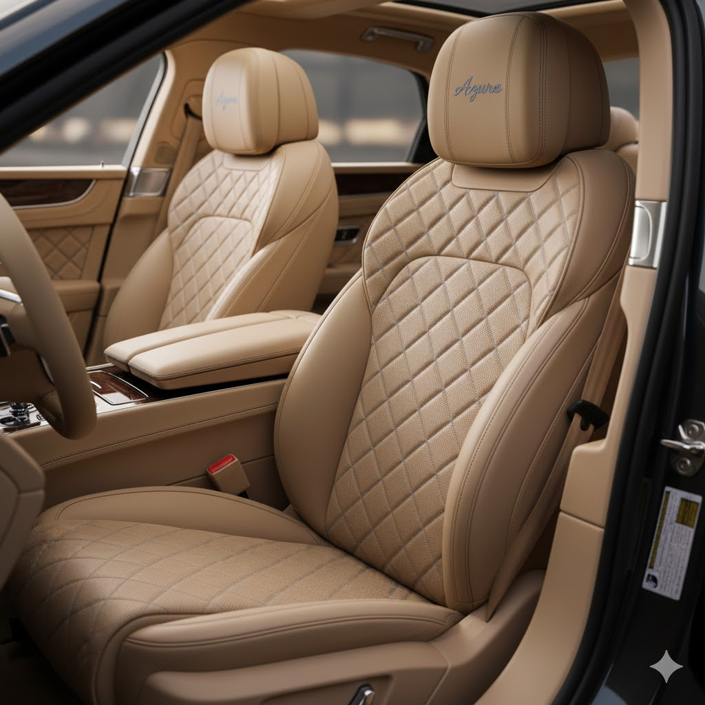 Kursi Bentley Flying Spur Azure dirancang untuk kenyamanan jangka panjang. Bantalan empuk dan desain ergonomis menopang tubuh dengan sempurna.